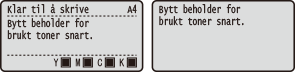 Når den gjenværende kapasiteten i tonerkassetten som skal kasseres allerede er liten, vil den tilhørende meldingen vise på displayet. Du kan også sjekke statusen for tonerkassetten som skal kasseres, på displayet.