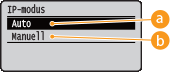 <Manuell>Velges for å konfigurere IP-adresseinnstillingene ved å angi en IP-adresse manuelt.