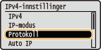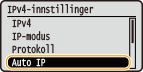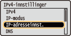 2 | Velg <IP-adresseinnst.> og trykk på . |