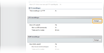 1 | Klikk på [Rediger] i [LPD-innstillinger]. ![]() |