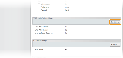 1 | Klikk på [Rediger] i [WSD-utskriftsinnstillinger]. ![]() |