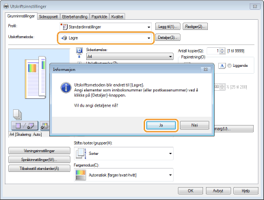 Velg [Lagre] i [Utskriftsmetode], og klikk på [Ja].