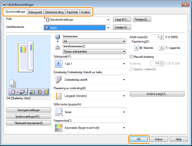 Angi utskriftsinnstillingene etter behov, og klikk på [OK].