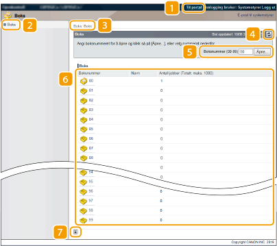 Du kan klikke på tekstkoblingen under [Boksnummer] for å åpne den tilsvarende boksen.