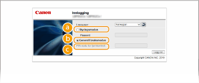 [Styringsmodus]Du kan utføre alle funksjoner og angi innstillinger for Fjernkontroll. Angi systembehandlerpassordet i [Passord].