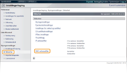 Velg å begrense sending av data fra maskinen til en datamaskin ved å angi MAC-adresser.