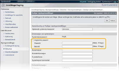 Angi det gjeldende passordet i [Gjeldende systemstyrerpassord].