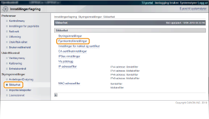 1 | Klikk på [Sikkerhet]  [Fjernkontrollinnstillinger]. |