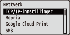![]() | Alle innstillingene om nettverket er oppført med korte beskrivelser. Standardinnstillinger er merket med en dolk ( ). |