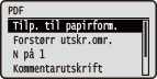 Velg om du vil skrive ut kommentarer. Hvis du velger <Auto>, skriver maskinen ut kommentarer i PDF-filen.