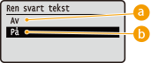 Først skrives dataene ut etter at den svarte teksten er skåret bort fra den fargede bakgrunnen eller figuren, og lar det tilhørende feltet være hvitt/tomt. Utskriften kan bli svakere enn med innstillingen <På> og kantene på teksten kan være omgitt med hvitt.