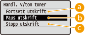 Fortsett utskrift Paus utskrift ![]() Stopp utskrift |