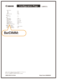 Wydrukować Strona konfiguracji i sprawdzić, czy w menu „PCL” jest wyświetlana pozycja „BarDIMM”. Jeśli pozycja „BarDIMM” jest widoczna, oznacza to, że pamięć ROM jest zainstalowana prawidłowo. ![]() Pozycja „BarDIMM” jest niewidoczna Pamięć ROM nie jest zainstalowana prawidłowo. Wyjmij moduł pamięci ROM z urządzenia i podłącz go ponownie. | ![]() |