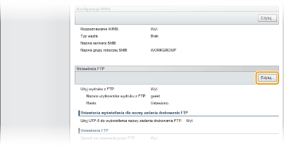 Kliknij element [Edytuj] znajdujący się w sekcji [Ustawienia FTP].