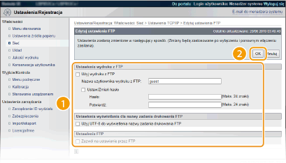 To pole wyboru należy zaznaczyć, aby móc drukować za pośrednictwem serwera FTP. W przeciwnym razie nie powinno być ono zaznaczone.