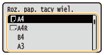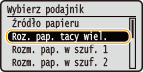 wybierz opcję <Roz. pap. tacy wiel.> i naciśnij przycisk