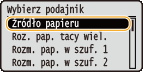 wybierz opcję <Źródło papieru> i naciśnij przycisk