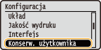 wybierz opcję <Konserw. użytkownika> i naciśnij przycisk
