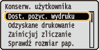 Wybierz opcję <Dost. pozyc. wydruku> i naciśnij przycisk