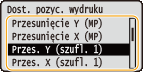 Jeżeli jest określony parametr <Przes. Y (2-str.)> , położenie wydruku jest regulowane z użyciem wartości wejściowych dla wszystkich źródeł papieru.