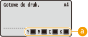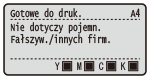 Jeśli komunikat <Gotowe do druk.> się nie wyświetla, drukowanie zostanie tymczasowo zatrzymane. Aby przywrócić drukowanie, należy nacisnąć przycisk  (  ). To, jaki komunikat zostanie wyświetlony, zależy od ustawienia opcji <Czynn. przy ostrzeż.> w menu ustawień panelu roboczego. Czynn. przy ostrzeż.Jako wartość wywołującą wyświetlenie komunikatu można ustawić dowolną wartość procentową ilości toneru pozostałego w kasecie z tonerem. Okr.częst.spr.tonera |