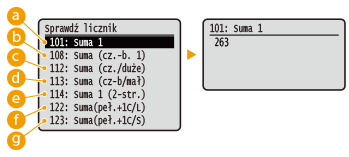 Pozwala sprawdzić całkowitą liczbę dotychczas wydrukowanych stron, a także bieżącą liczbę stron wydrukowanych w trybie czarno-białym i w trybie kolorowym.