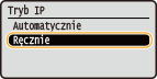 <Ręcznie>Ustawienie to umożliwia konfigurację ustawień adresu IP poprzez ręczne wprowadzenie adresu IP.