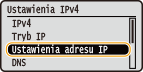 2 | Wybierz opcję <Ustawienia adresu IP> i naciśnij przycisk . |