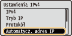 6 | Wybierz opcję <Automatycz. adres IP> i naciśnij przycisk . |