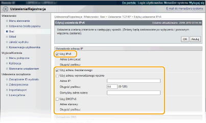Zaznacz pole wyboru [Użyj IPv6], a następnie skonfiguruj wymagane ustawienia.