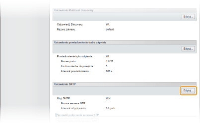 Kliknij element [Edytuj] znajdujący się w sekcji [Ustawienia SNTP].