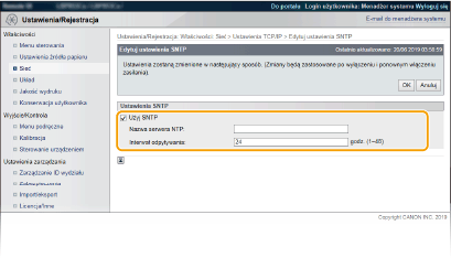 Zaznacz pole wyboru [Użyj SNTP] i podaj wymagane ustawienia.