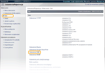 Korzystanie z panelu sterowaniaSewer SMB można również włączać lub wyłączać z poziomu menu ustawień panelu roboczego. SMBDrukowanie SMB można również włączać lub wyłączać z poziomu menu ustawień panelu roboczego. SMB |