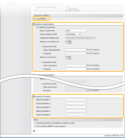 Jeśli nie trzeba zmieniać ustawień SNMPv3, przejdź do kolejnego kroku.