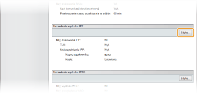 1 | Kliknij element [Edytuj] znajdujący się w sekcji [Ustawienia wydruku IPP]. ![]() |