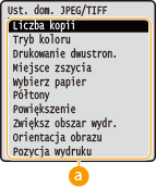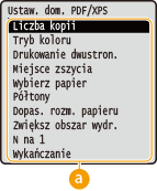 Ustawienia wyświetlane początkowo celem określenia ustawień wydruku są nazywane ustawieniami domyślnymi. Dopasowanie ustawień domyślnych do często wykonywanych operacji eliminuje konieczność określania tych samych ustawień za każdym razem, gdy wykonywane są wydruki.