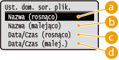Można ustawić kolejność, w jakiej będą wyświetlane pliki do wydrukowania z urządzenia pamięci USB.