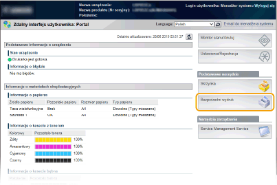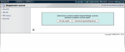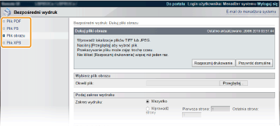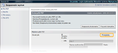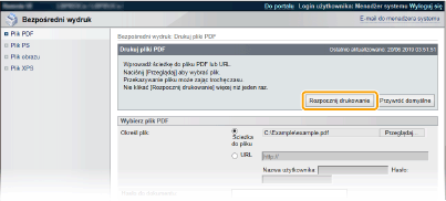 Istnieje możliwość wydrukowania pliku z poziomu przeglądarki internetowej (Zdalnego interfejsu użytkownika) bez jego otwierania. Ponadto można również wydrukować plik PDF zamieszczony w sieci poprzez podanie wyłącznie jego adresu URL.