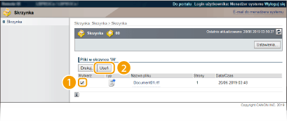 Zaznacz pole wyboru przy dokumencie do usunięcia i kliknij [Usuń].