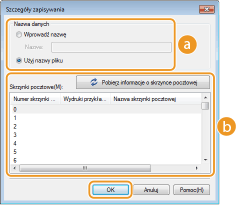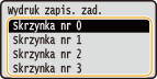 [Skrzynki pocztowe]Miejsce zapisu danych drukowania na karcie SD jest nazywane sektorem. Należy wybrać numer sektora do zapisu dokumentu. W celu ułatwienia identyfikacji sektora można do niego przypisać nazwę.
