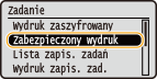 wybierz opcję <Zabezpieczony wydruk> i naciśnij przycisk