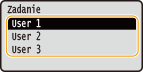 Jeśli na karcie SD przechowywane są dokumenty zabezpieczone, utworzone przez kilku użytkowników, wówczas przed wyświetleniem powyższego ekranu zostanie wyświetlony ekran wyboru użytkownika. Wybierz swoją nazwę użytkownika i naciśnij przycisk