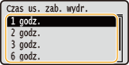 Wybierz opcję <Czas us. zab. wydr.> i naciśnij przycisk