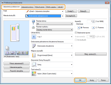 Określ ustawienia drukowania według potrzeb i kliknij przycisk [OK].