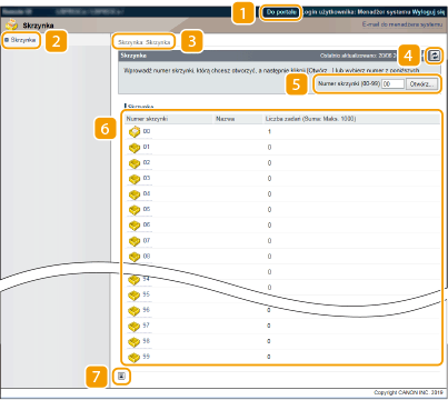Wyświetla stronę [Skrzynka]. Umożliwia to drukowanie i usuwanie dokumentów zapisanych w urządzeniu.