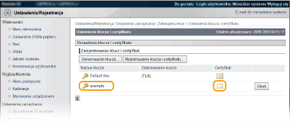 Kliknij [Nazwa klucza] lub [Certyfikat], aby zarejestrować certyfikat.