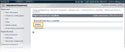 Kliknij [Ustawienia klucza i certyfikatu], aby zainstalować parę kluczy lub [Ustawienia certyfikatu CA], aby zainstalować certyfikat CA.