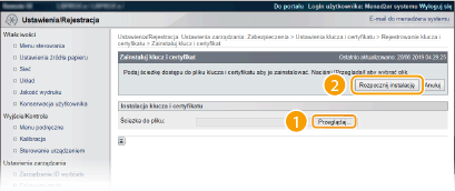 [Ustawienia klucza i certyfikatu] lub [Ustawienia certyfikatu CA].