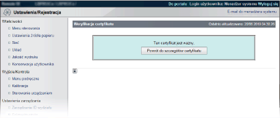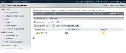 Kliknij [Ustawienia klucza i certyfikatu], aby zweryfikować parę kluczy lub [Ustawienia certyfikatu CA], aby zweryfikować certyfikat CA.
