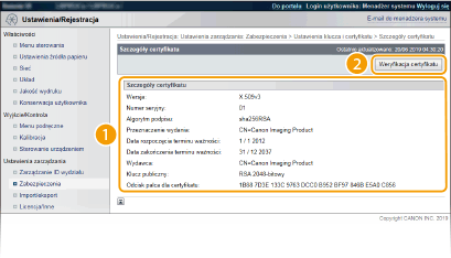 Sprawdź szczegóły certyfikatu i kliknij przycisk [Weryfikacja certyfikatu].